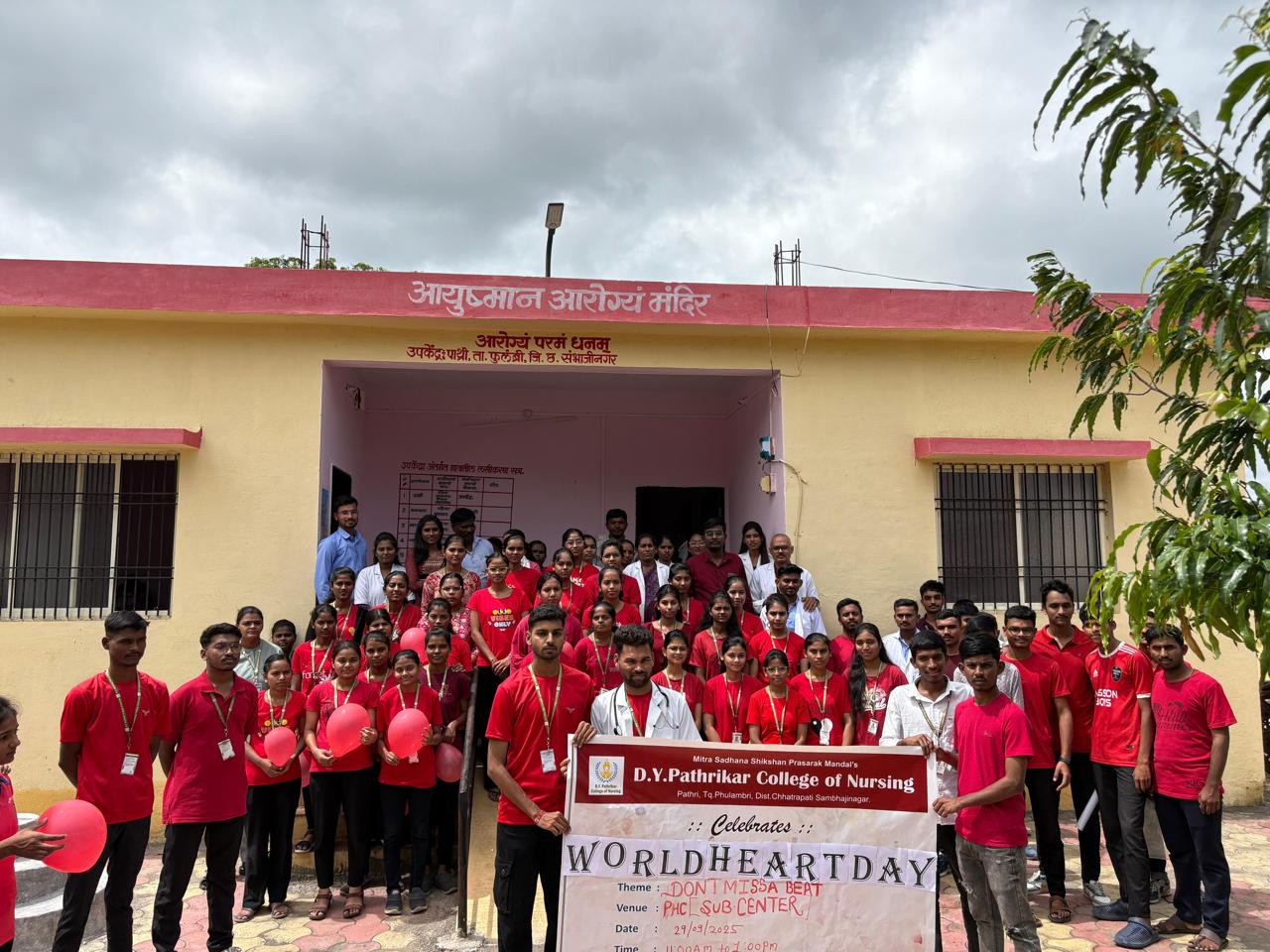 The D.Y. Pathrikar College of Nursing successfully organized World Heart Day on 29th September with the aim of creating awareness about cardiovascular health and the importance of adopting a healthy lifestyle. The program was conducted under the guidance of the principal and faculty members of the Nursing College.